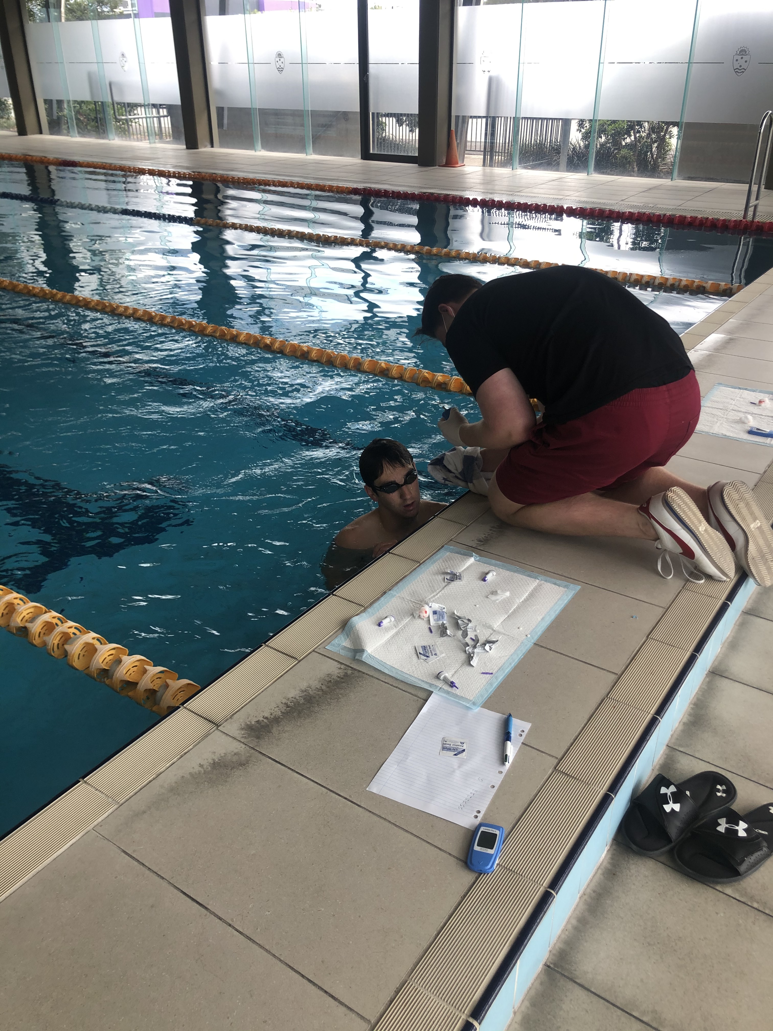 Pictures taken during the Lactate Threshold Project (2020) involving swimmers from the Bond Swimming club and students from the Exercise Physiology and Biochemistry subject